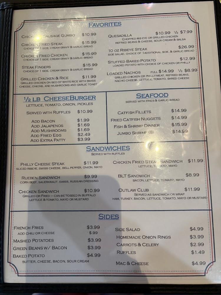 The menu at Outlaw Ray's is diverse, featuring grilled meats, seafood, and classic bar dishes. Signature items include chicken sausage gumbo and several mouthwatering pizzas. Happy hour specials keep the prices friendly while tantalizing the taste buds. The bar also serves a variety of flavored shots and cocktails that enhance the experience. Seasonal offers, like boiled crawfish, showcase local flavors, making each visit exciting.
